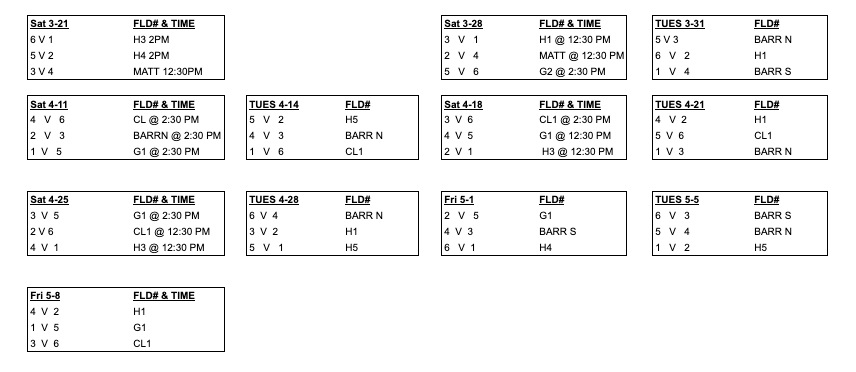 2026 MAJOR GIRLS SCHEDULE